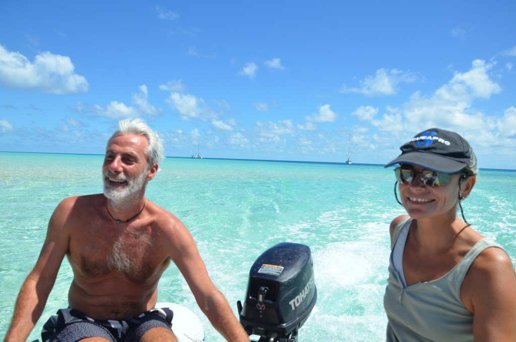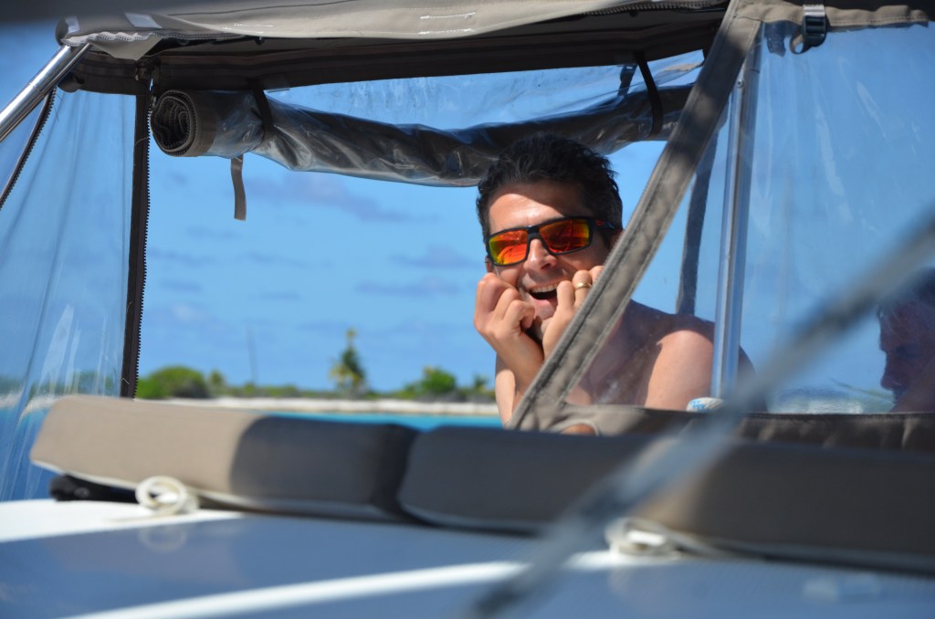 Pas besoin de Mercalm, juste une bonne Hinano bien fraîche (nous avons très vite constaté les ressources inépuisables de stockage du bateau!). Un petit passage dans les 3 superettes du village de Rotoava à la recherche du cumin moulu et..perdu de notre chef cuistot Captain Faka, une connexion pour embrasser nos loulous restés chez Papy et Mamy en métropole, et nous voilà partis vers le paradis sur terre : la passe sud de Tetamanu.