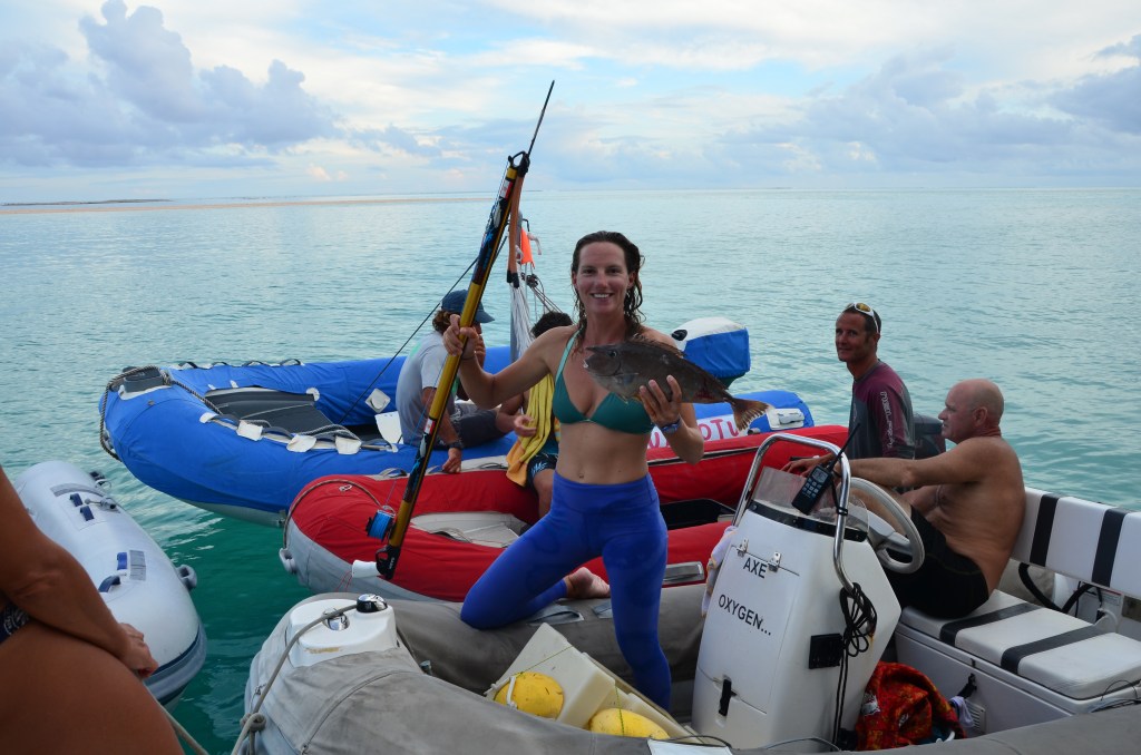 A bord, la vie est rythmée par des repas élaborés par notre chef Captain Faka et ses assistants pâtissiers Angel Geek et MM. Déguster un baba au rhum, une tarte citron ou un moelleux au chocolat fut un luxe bien appréciable avec vue sur le lagon en prime. Fakarêver est un véritable « relais-bateau ». Les poissons à la Tahitienne à tomber à base de thon, nason ou mérou, les flamenkuchs, le pain maison le matin au petit dèj ont enchanté nos papilles : on était loin du Captain Igloo de nos cantines ! Nous avons même eu droit à une dégustation de bulots et oursins crayon ramassés le matin même sur le plantier.